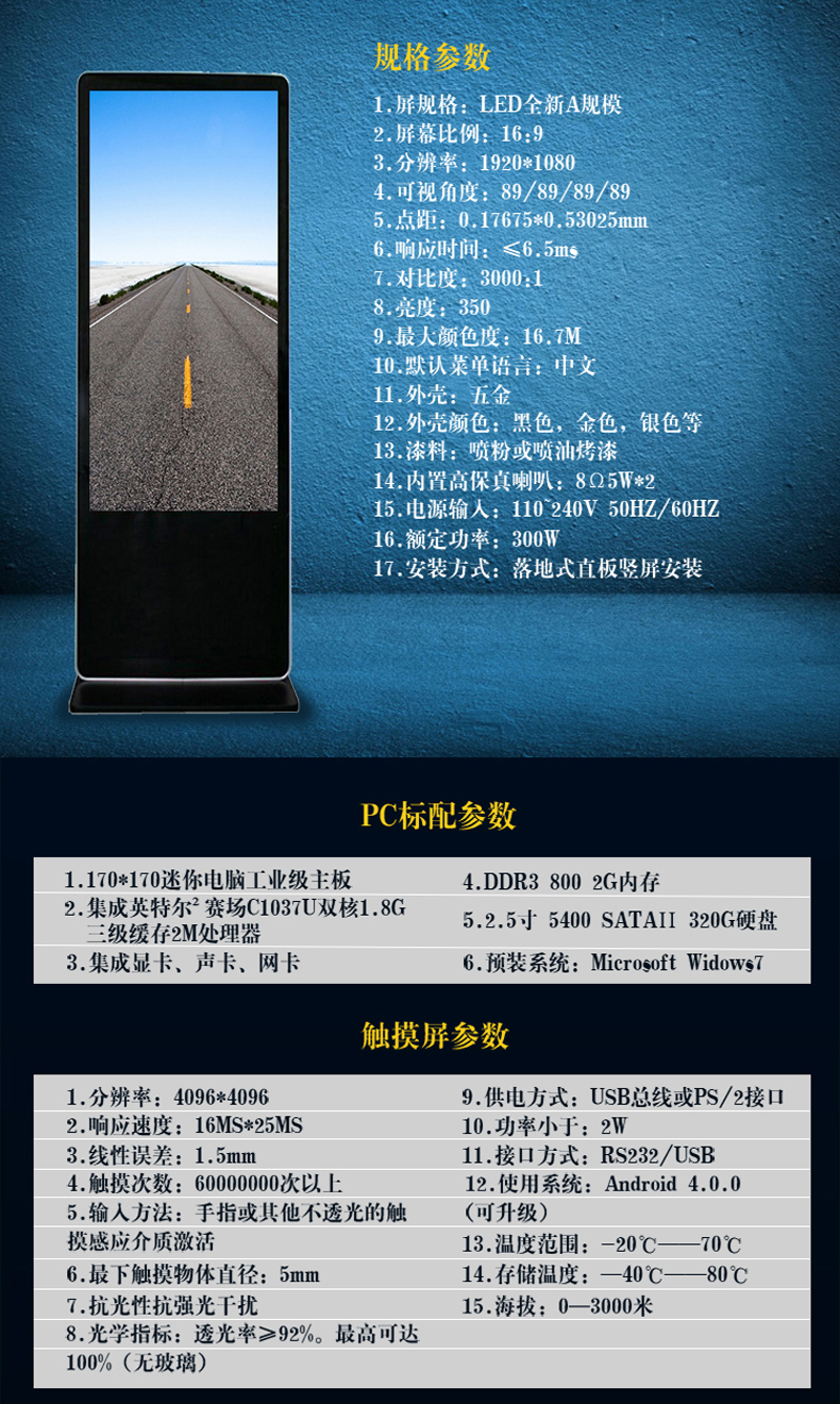 立式落地單機(jī)/網(wǎng)絡(luò)廣告機(jī)